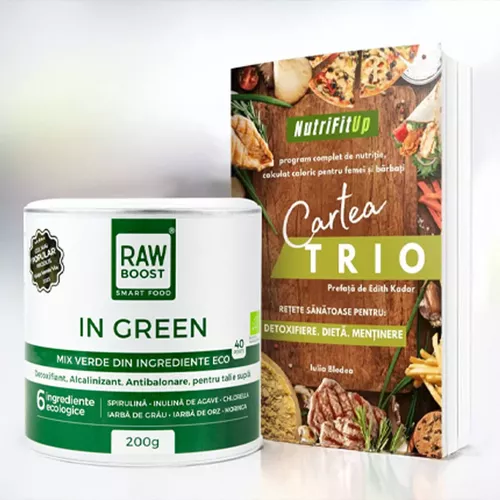 Pachet START: Cartea TRIO – Detoxifiere. Dietă. Menținere + In Green – Mix Verde ECO, Rawboost