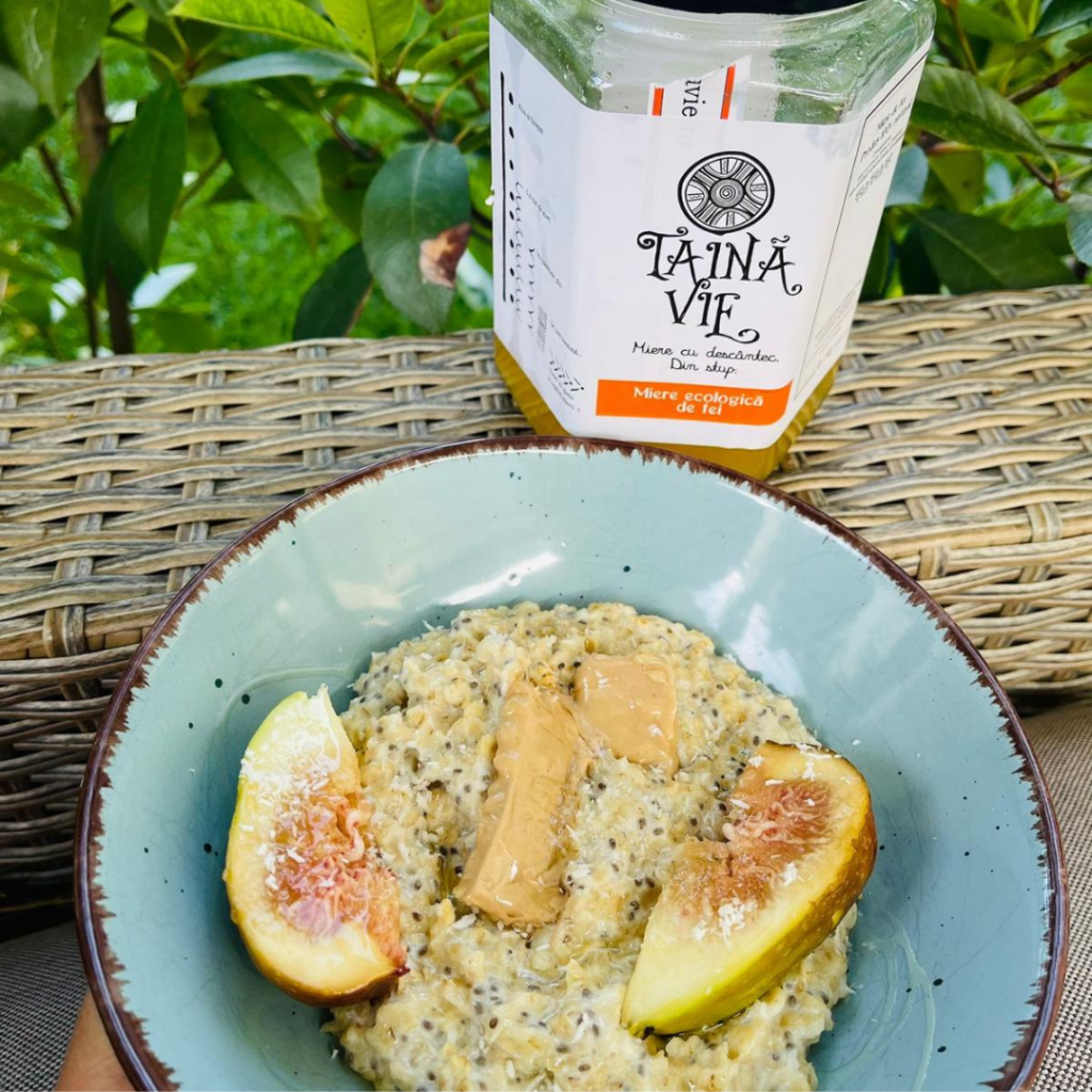 • Poți decora cu fructe proaspete, miere, nuci sau scorțișoară, după preferință.